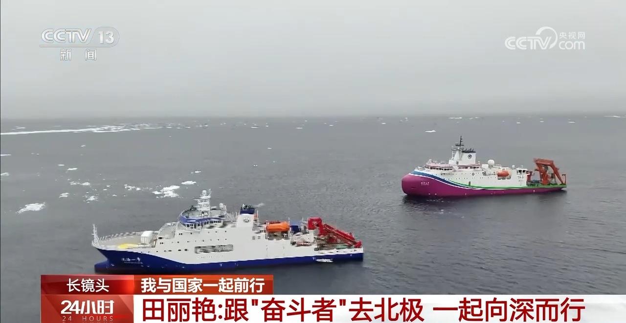 中国科学院深海科学与工程研究所研究员 田丽艳:后来当潜水器带着灯,从水面起来的那一下,大家就终于放心了。我们第一个在北极加克洋中脊下潜的潜次,是奋斗者411潜次。第一次我们下潜回收就那么困难,但我们在412、包括413的潜次过程中就迅速地调整了,再也没有花过那么长的时间。包括船破冰之后要用船身其中的一侧来压住浮冰,这个都是他们迅速地就设计出这样的方案,能高效地保证潜器顺利上浮。40多天断网的状态,无论是在生理上还是心理上,都是一个很大的挑战。